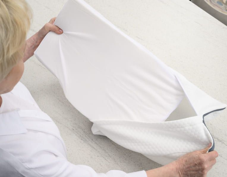 Lay your Derila so that the thinner side of the pillow is facing your head and neck. This will allow you to easily rest your head right into the contour of your pillow.